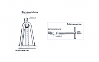 Eine Verformung der Gabelbrücken (Verdrehung) bewirkt, dass die Standrohre von der Seite (quer zur Fahrtrichtung) gesehen nicht mehr parallel verlaufen. Die Aufnahmen (Augen) der unteren und/oder oberen Gabelbrücke weisen in diesem Falle Verbiegungen auf, die sich im "Schiefstand" der Standrohre, bzw. der Federbeine äußern.