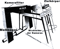 M.a.x. ist ein optisches Meßsystem auf der Basis von zwei Meßkameras in einem Meßbügel und Meßmarken in einem Zielkörper, der an der Vordergabel befestigt ist. Die Kameras können die Position der Meßmarken sehr exakt ermitteln. Die Lenkachse eines Motorrades mißt m.a.x. durch Errechnen der Drehbewegung aus 2 Meßstellungen der Vordergabel. Beschädigungen der Vordergabel haben keinen Einfluß auf das Meßergebnis, solange eine definierte Drehbewegung gegeben, d.h. die Lagerung intakt ist.